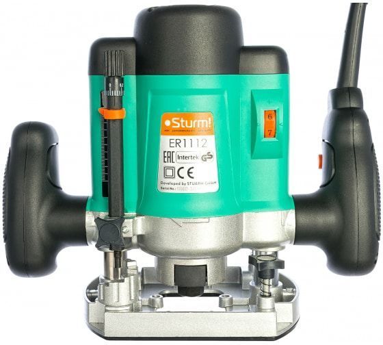 Фрезер Штурм ER1112 - ручной деревообрабатывающий инструмент, применяется в различных столярных и плотницких работах для обработки кромок и профилей, фасок в деревянных конструкциях, для изготовления пазов и т.д.