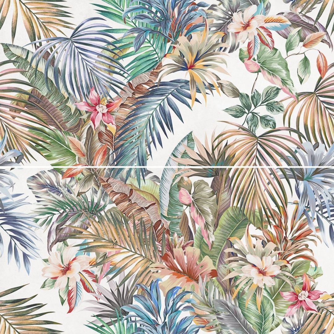 Панно Laparet OS\A389\2x\48018R Hawai 80x80 (2 шт 40x80) микс матовое с листьями / с цветами по доступной цене с доставкой по Москве, Московской области и России. Стоимость товаров на сайте mnogoplitki.com