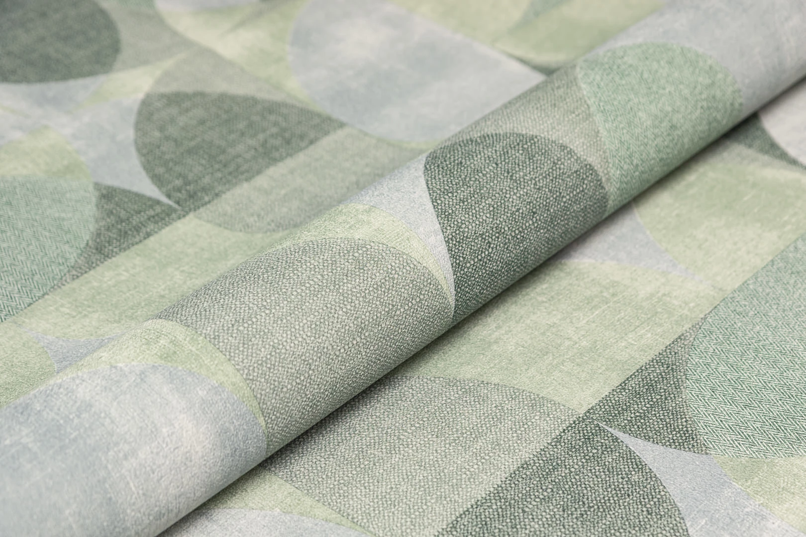 Обои виниловые Kerama Marazzi KM8513 Шафран на флизелиновой основе, мотив, зеленые рельефные круги