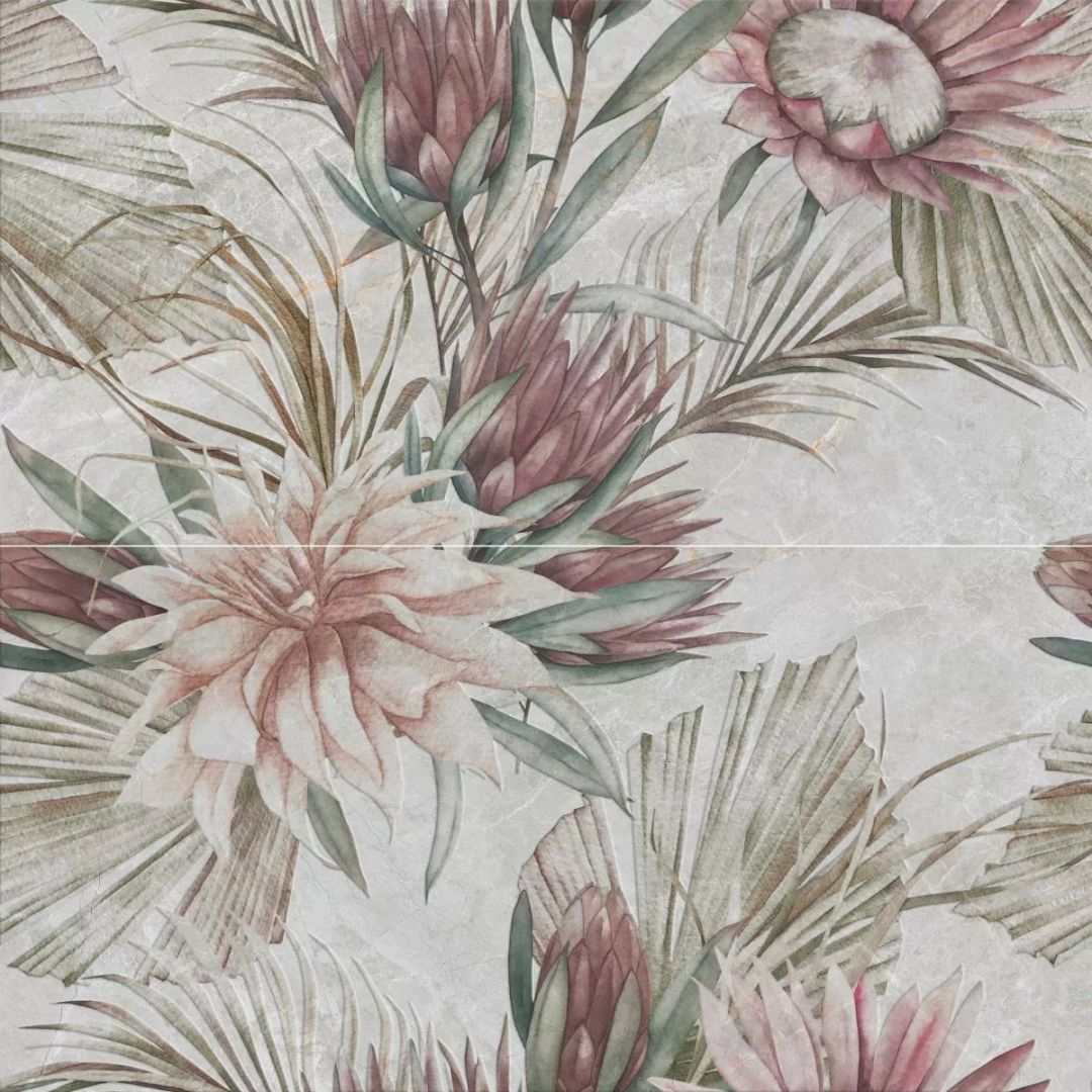 Панно Laparet 06-01-1-36-05-11-4131-0 Lapalma 60x60 (2 шт 30x60) бежевое глянцевое под мрамор / с цветами по доступной цене с доставкой по Москве, Московской области и России. Стоимость товаров на сайте mnogoplitki.com