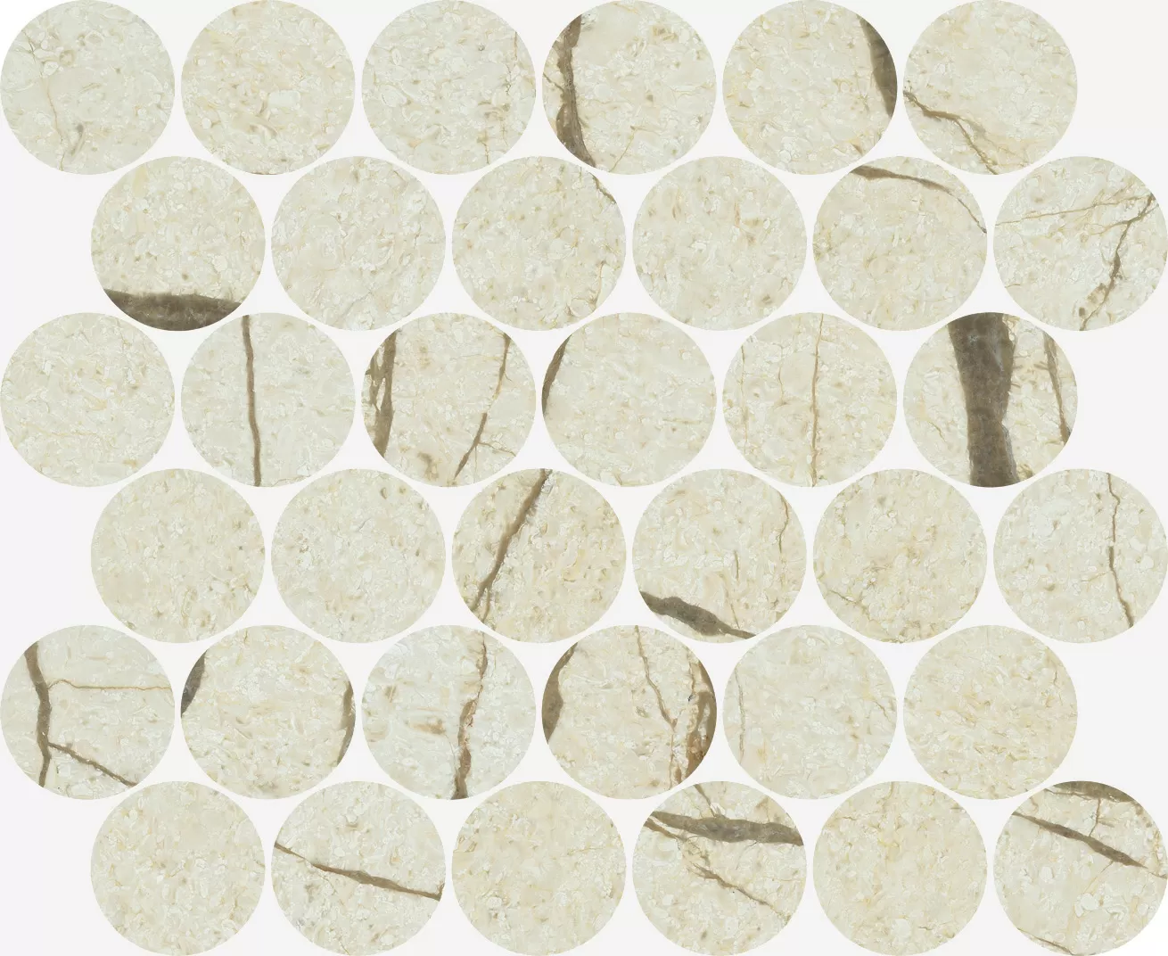 Мозаика Italon 600110000934 Charme Deluxe River.Mosaico Lounge / Шарм Делюкс Ривер Лаунж 26.2x30.2 кремовая глянцевая под камень, чип круглый по доступной цене с доставкой по Москве, Московской области и России. Стоимость товаров на сайте mnogoplitki.com